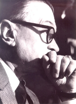 Duvivier pendant une prise de vue, attentif à l'interprétation